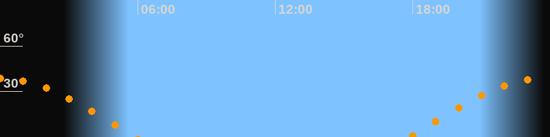 | Untergang | 05:54 Uhr im Westen (αAz = 270,1°) |