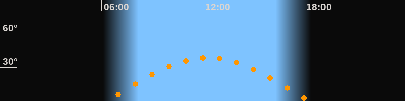 | Höchster Stand (Kulmination) | 12:18 Uhr (h = 38,9°) |