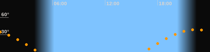 | Aufgang | 16:21 Uhr im Osten (αAz = 89,9°) |