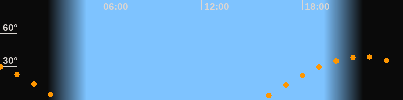 | Aufgang | 15:30 Uhr im Osten (αAz = 89,9°) |