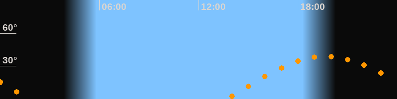 | Aufgang | 13:40 Uhr im Osten (αAz = 89,9°) |