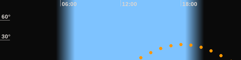 Höchster Stand (Kulmination)18:10 Uhr (h = 23,5°)