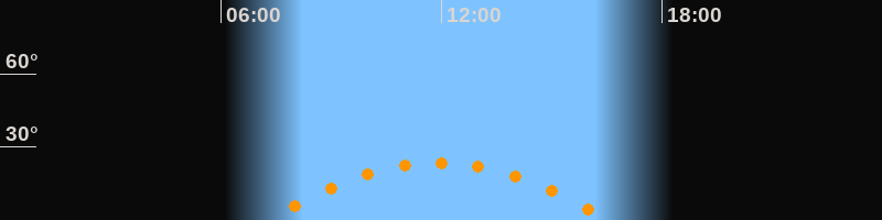 Höchster Stand (Kulmination)11:54 Uhr (h = 23,5°)