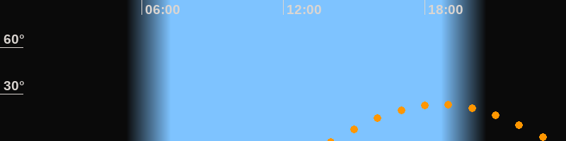 Höchster Stand (Kulmination)18:40 Uhr (h = 23,5°)
