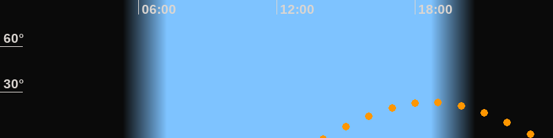 Höchster Stand (Kulmination)18:41 Uhr (h = 23,5°)