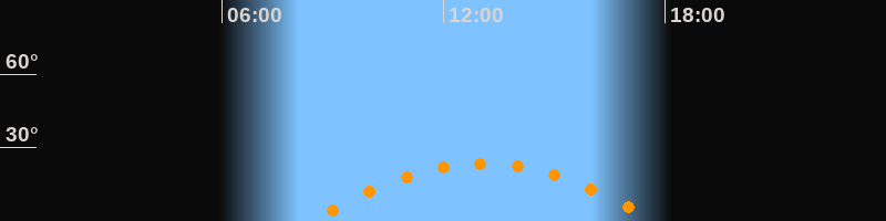Höchster Stand (Kulmination)13:04 Uhr (h = 23,5°)