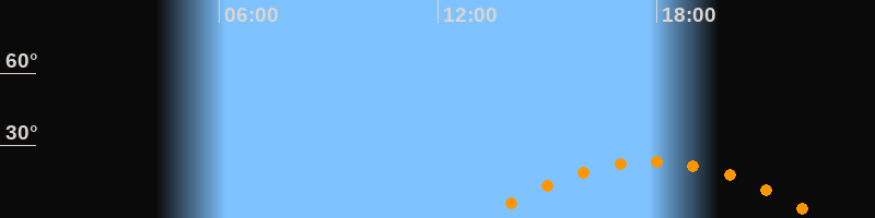 Höchster Stand (Kulmination)17:52 Uhr (h = 23,5°)