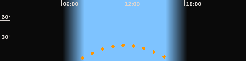 Höchster Stand (Kulmination)12:06 Uhr (h = 23,5°)