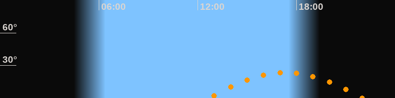 Höchster Stand (Kulmination)17:20 Uhr (h = 23,5°)