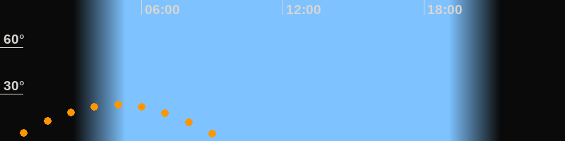 Untergang09:39 Uhr im Südwesten (αAz = 245,2°)