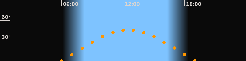 | Höchster Stand (Kulmination) | 12:30 Uhr (h = 45,8°) |