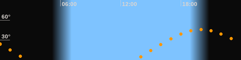| Aufgang | 13:25 Uhr im Osten (αAz = 78,9°) |