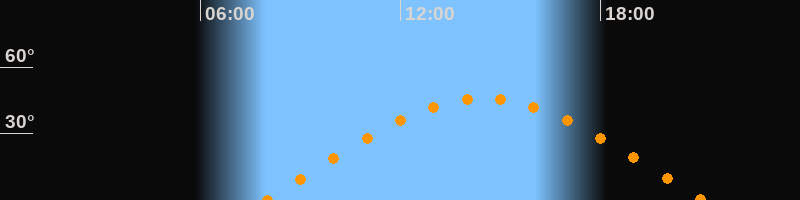 | Höchster Stand (Kulmination) | 14:30 Uhr (h = 45,8°) |