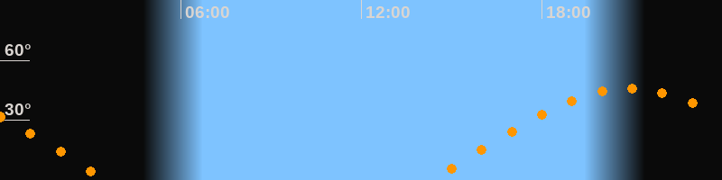 | Aufgang | 14:19 Uhr im Osten (αAz = 78,9°) |