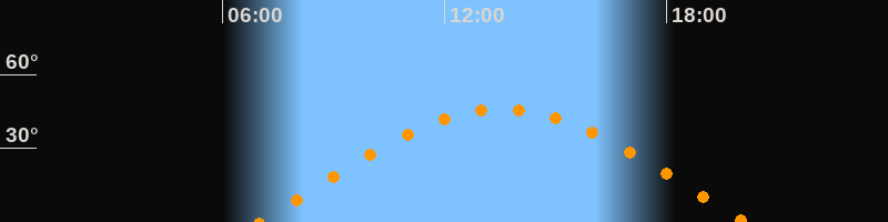 | Höchster Stand (Kulmination) | 13:33 Uhr (h = 45,8°) |