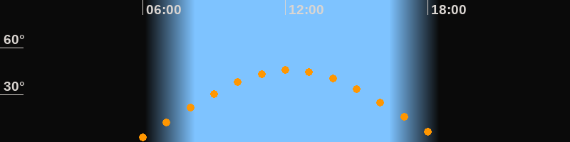 | Höchster Stand (Kulmination) | 12:10 Uhr (h = 45,8°) |