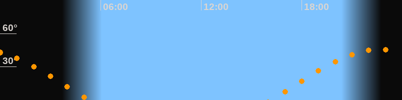 | Aufgang | 16:06 Uhr im Osten (αAz = 78,9°) |