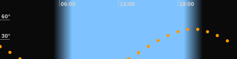 | Aufgang | 12:54 Uhr im Osten (αAz = 78,9°) |