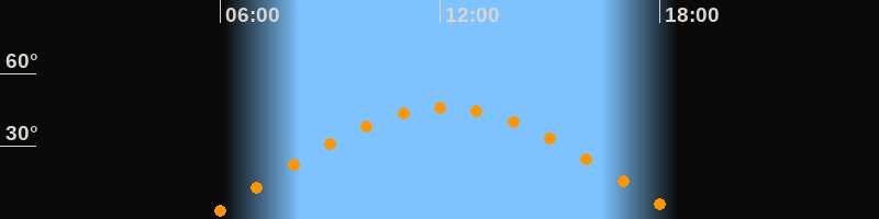 | Höchster Stand (Kulmination) | 12:08 Uhr (h = 45,8°) |