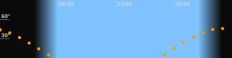 | Aufgang | 16:20 Uhr im Osten (αAz = 78,9°) |