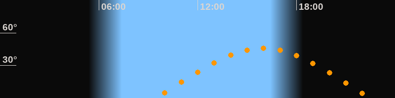 | Aufgang | 09:23 Uhr im Osten (αAz = 78,9°) |