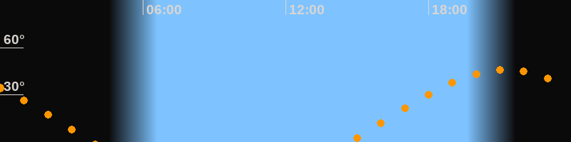 | Aufgang | 14:40 Uhr im Osten (αAz = 78,9°) |