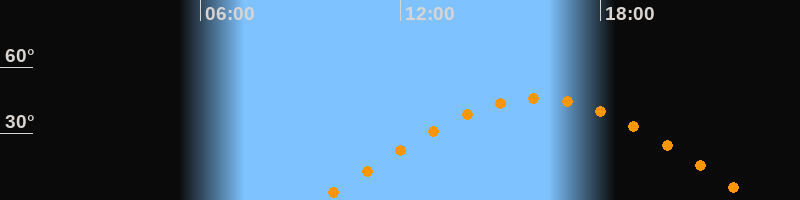 | Aufgang | 09:32 Uhr im Osten (αAz = 78,9°) |