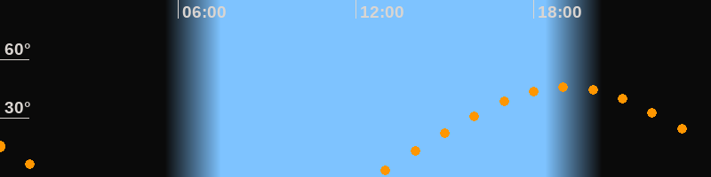 | Aufgang | 12:32 Uhr im Osten (αAz = 78,9°) |