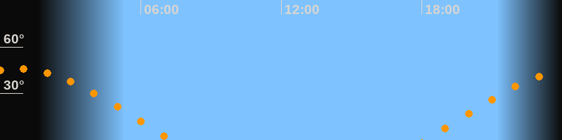 | Untergang | 07:20 Uhr im Westen (αAz = 281,1°) |