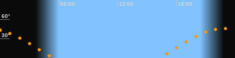 | Aufgang | 16:13 Uhr im Osten (αAz = 78,9°) |