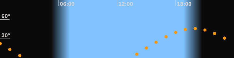 | Aufgang | 13:16 Uhr im Osten (αAz = 78,9°) |