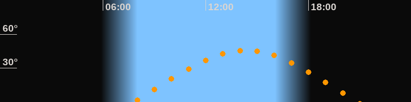 | Höchster Stand (Kulmination) | 14:20 Uhr (h = 45,8°) |