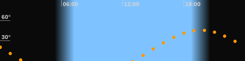 | Aufgang | 13:02 Uhr im Osten (αAz = 78,9°) |