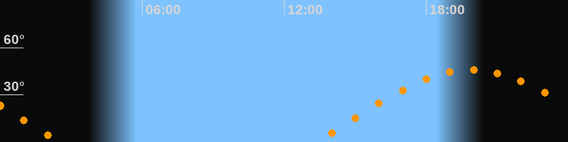 | Aufgang | 13:19 Uhr im Osten (αAz = 78,9°) |