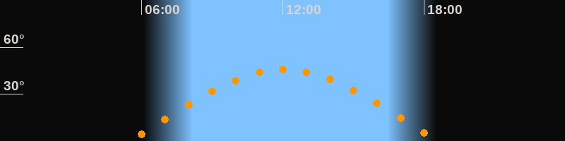| Höchster Stand (Kulmination) | 12:03 Uhr (h = 45,8°) |