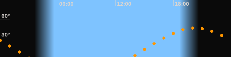 | Aufgang | 13:40 Uhr im Osten (αAz = 78,9°) |