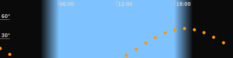 | Aufgang | 12:27 Uhr im Osten (αAz = 78,9°) |