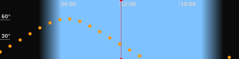 | Höchster Stand (Kulmination) | 06:40 Uhr (h = 61,4°) |