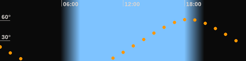 | Höchster Stand (Kulmination) | 18:24 Uhr (h = 61,4°) |