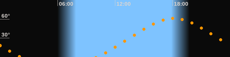 | Höchster Stand (Kulmination) | 18:06 Uhr (h = 61,4°) |