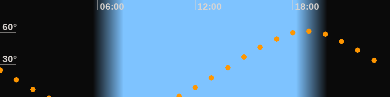 | Höchster Stand (Kulmination) | 18:50 Uhr (h = 61,4°) |