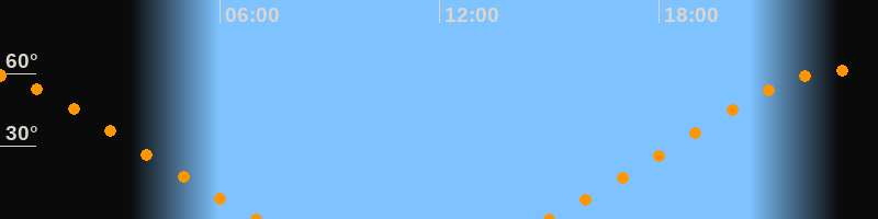 | Untergang | 07:05 Uhr im Nordwesten (αAz = 307,4°) |