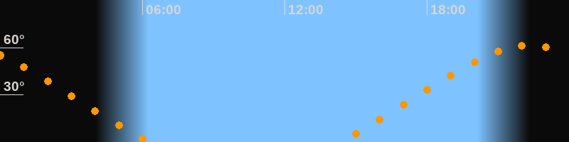 | Aufgang | 14:13 Uhr im Nordosten (αAz = 52,6°) |
