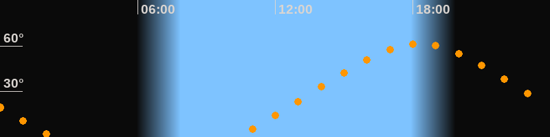 | Höchster Stand (Kulmination) | 18:16 Uhr (h = 61,4°) |