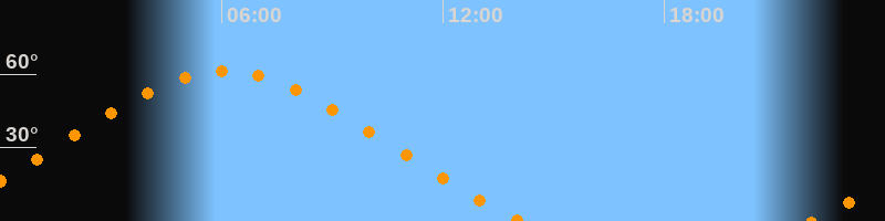 | Höchster Stand (Kulmination) | 06:05 Uhr (h = 61,4°) |