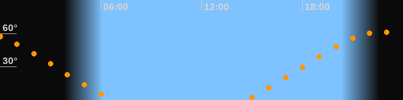 | Aufgang | 14:34 Uhr im Nordosten (αAz = 52,6°) |