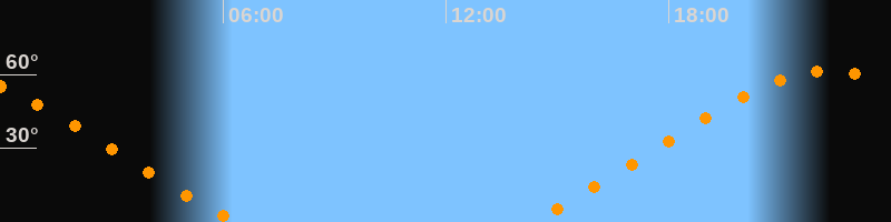 | Aufgang | 14:14 Uhr im Nordosten (αAz = 52,6°) |