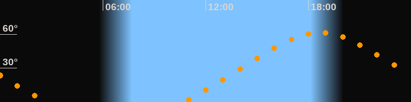 | Höchster Stand (Kulmination) | 18:40 Uhr (h = 61,4°) |