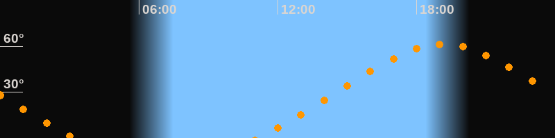 | Höchster Stand (Kulmination) | 19:09 Uhr (h = 61,4°) |