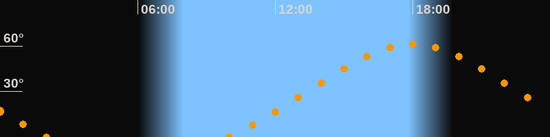 | Höchster Stand (Kulmination) | 17:59 Uhr (h = 61,4°) |